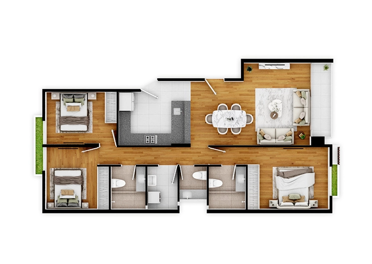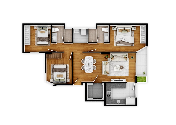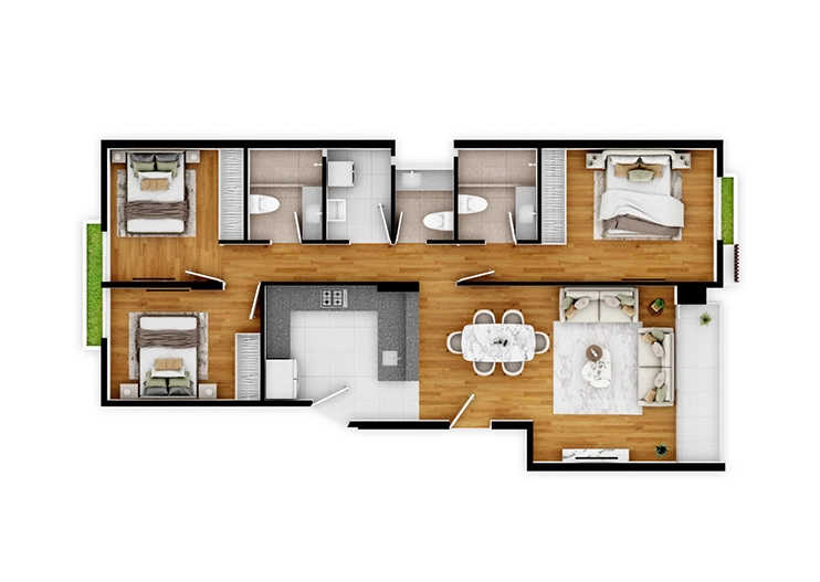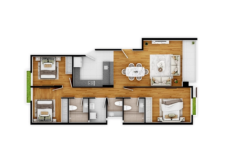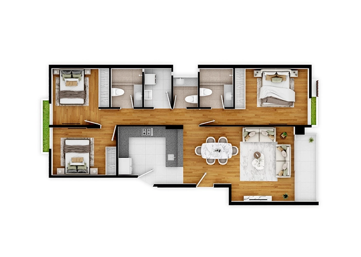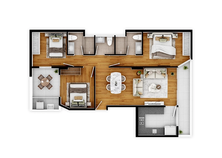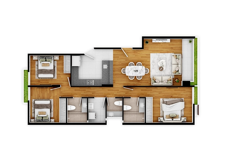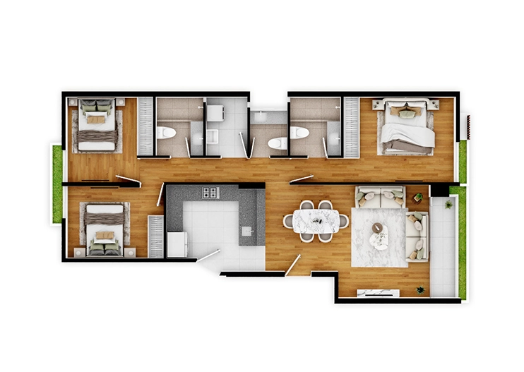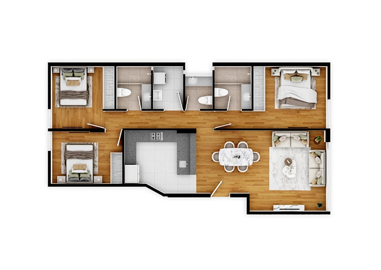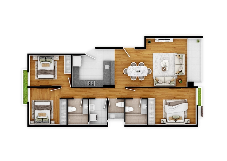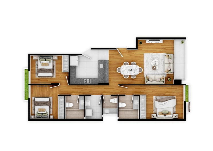 - Ambientes cómodos y funcionales adaptándose a tu estilo de vida.